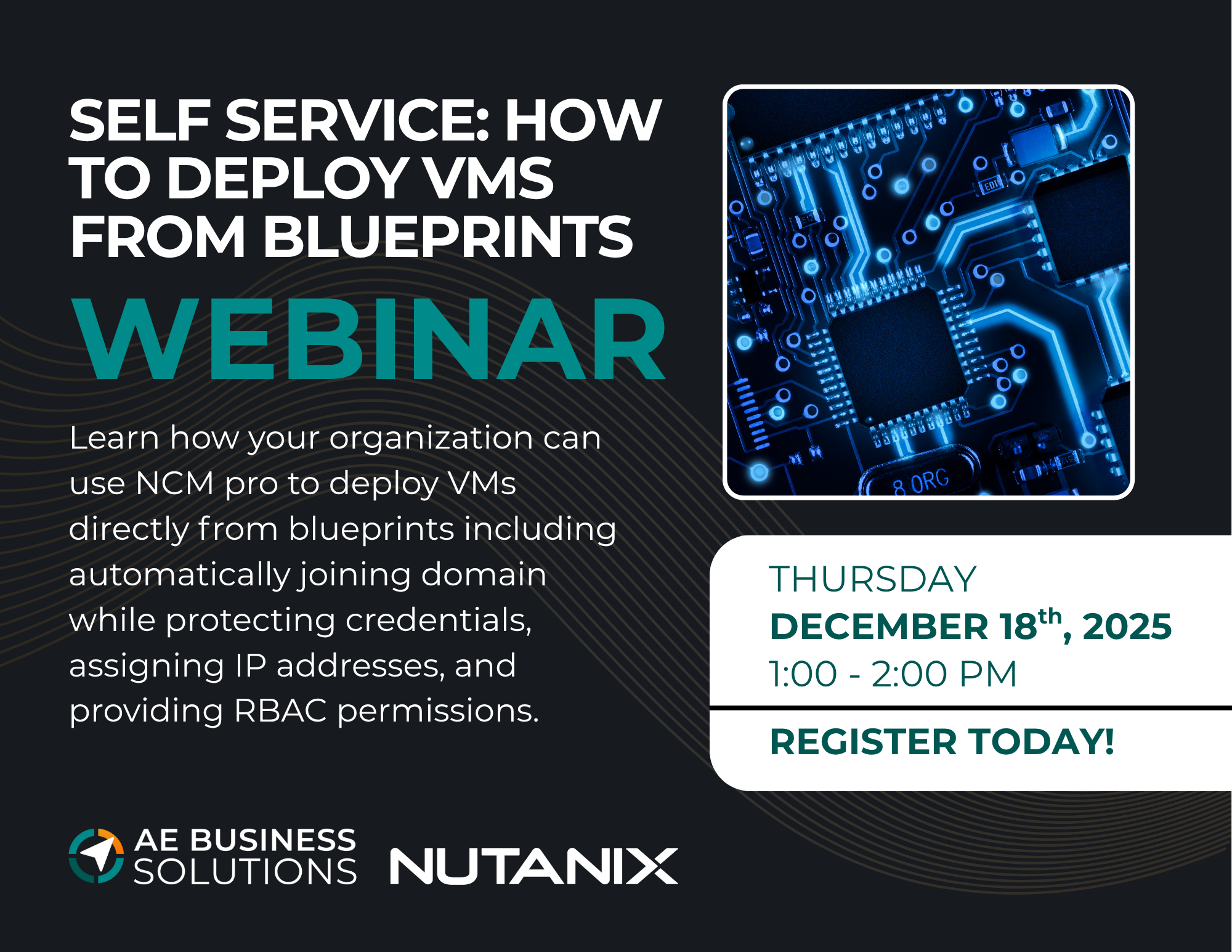 Learn how your organization can use NCM pro to deploy VMs directly from blueprints including automatically joining domain while protecting credentials, assigning IP addresses, and providing RBAC permissions.